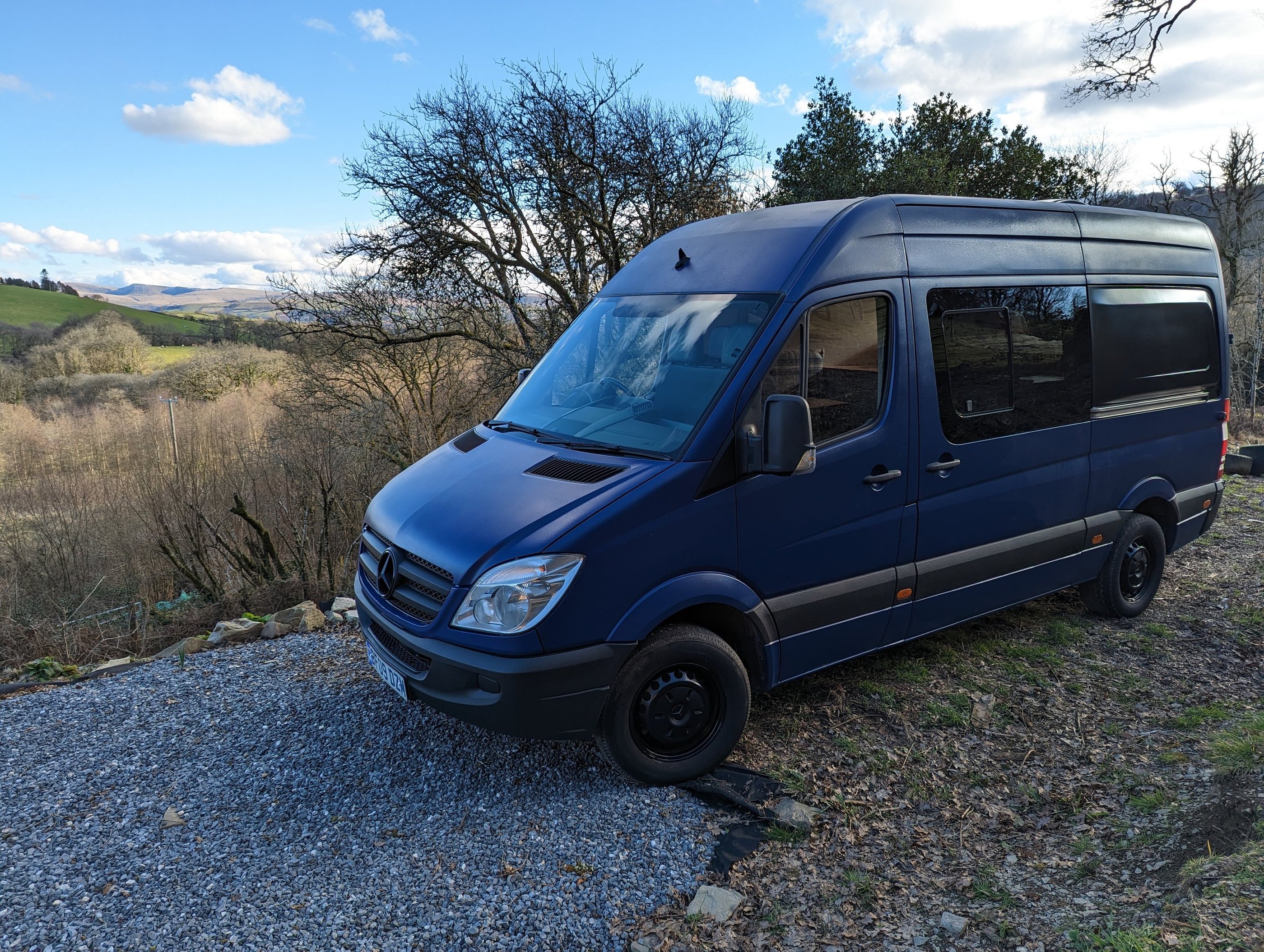 As part of the conversion this van has had a full exterior respray in raptor blue paint with satin black details. The work was professionally carried our by Tomos Lewis Body Shop in Lampeter. Just look at the pictures, the van looks brand new again. This is now a very unique head turning camper ready for action and many a social media post.